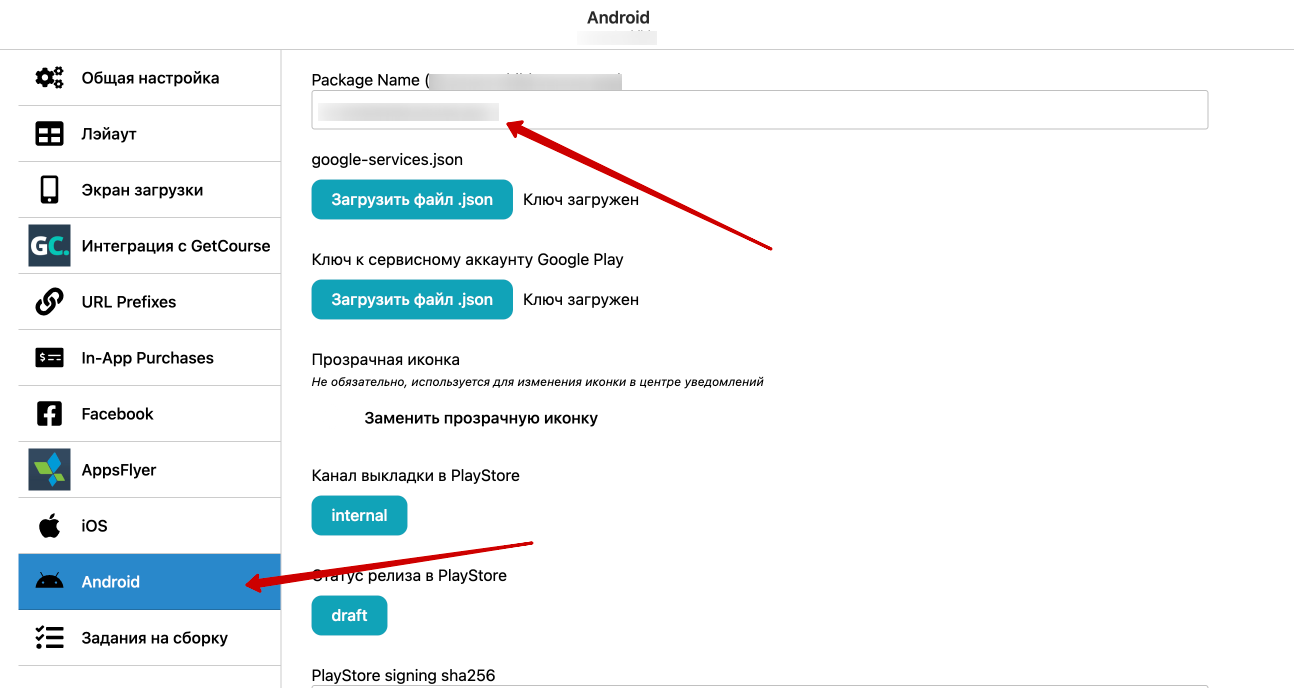 Добавляем также приложение для android (если есть).